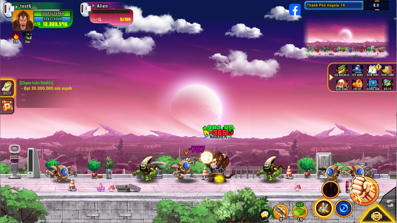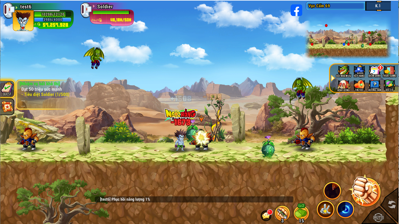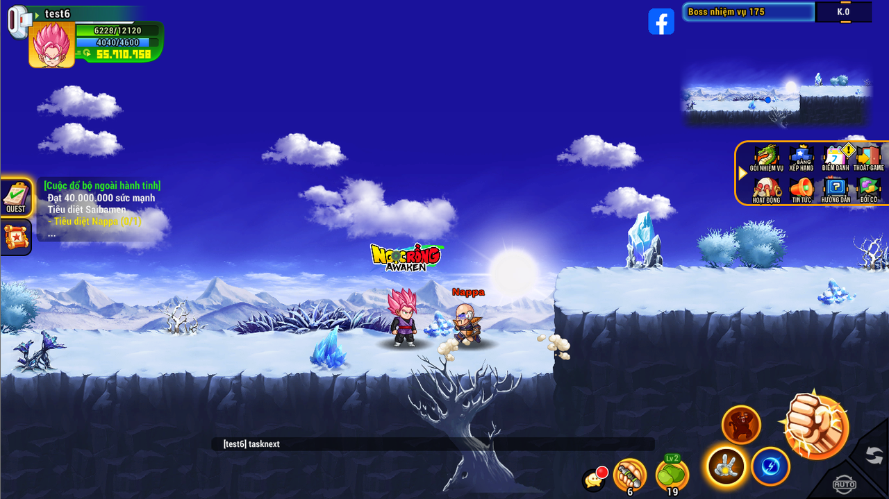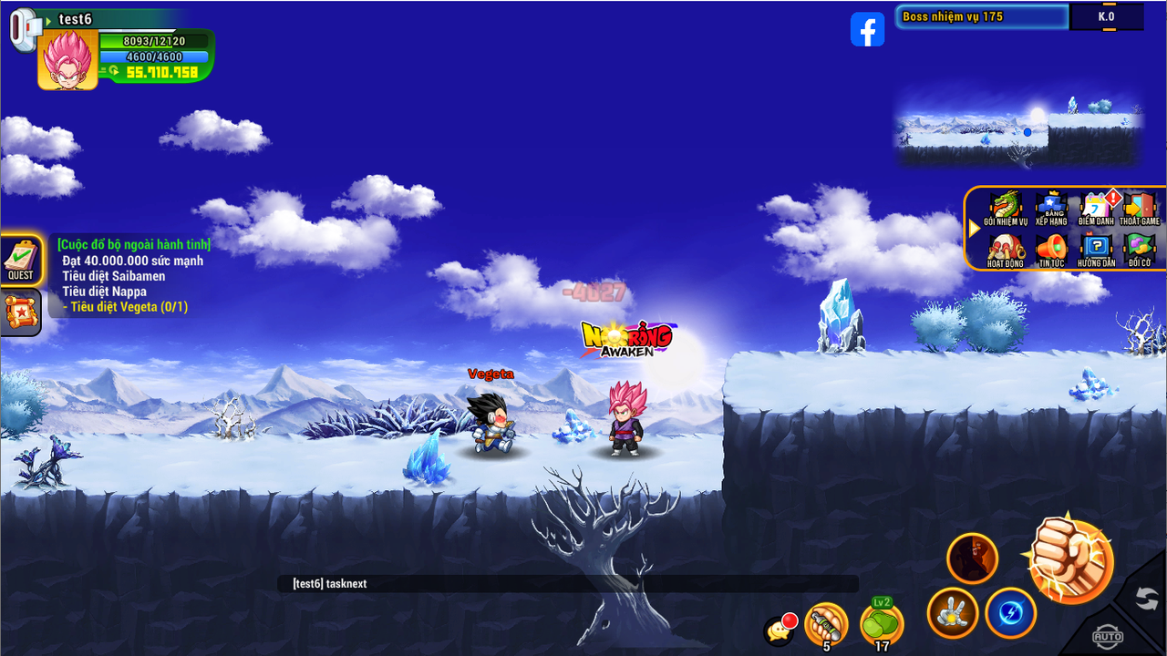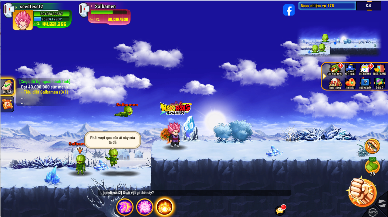 Sau khi đạt 40tr sm tiến hành click vào nhiệm vụ nhận vật sẽ tự động đi đến map làm nhiệm vụ tiêu diệt Saibamen, Nappa, Vegeta.