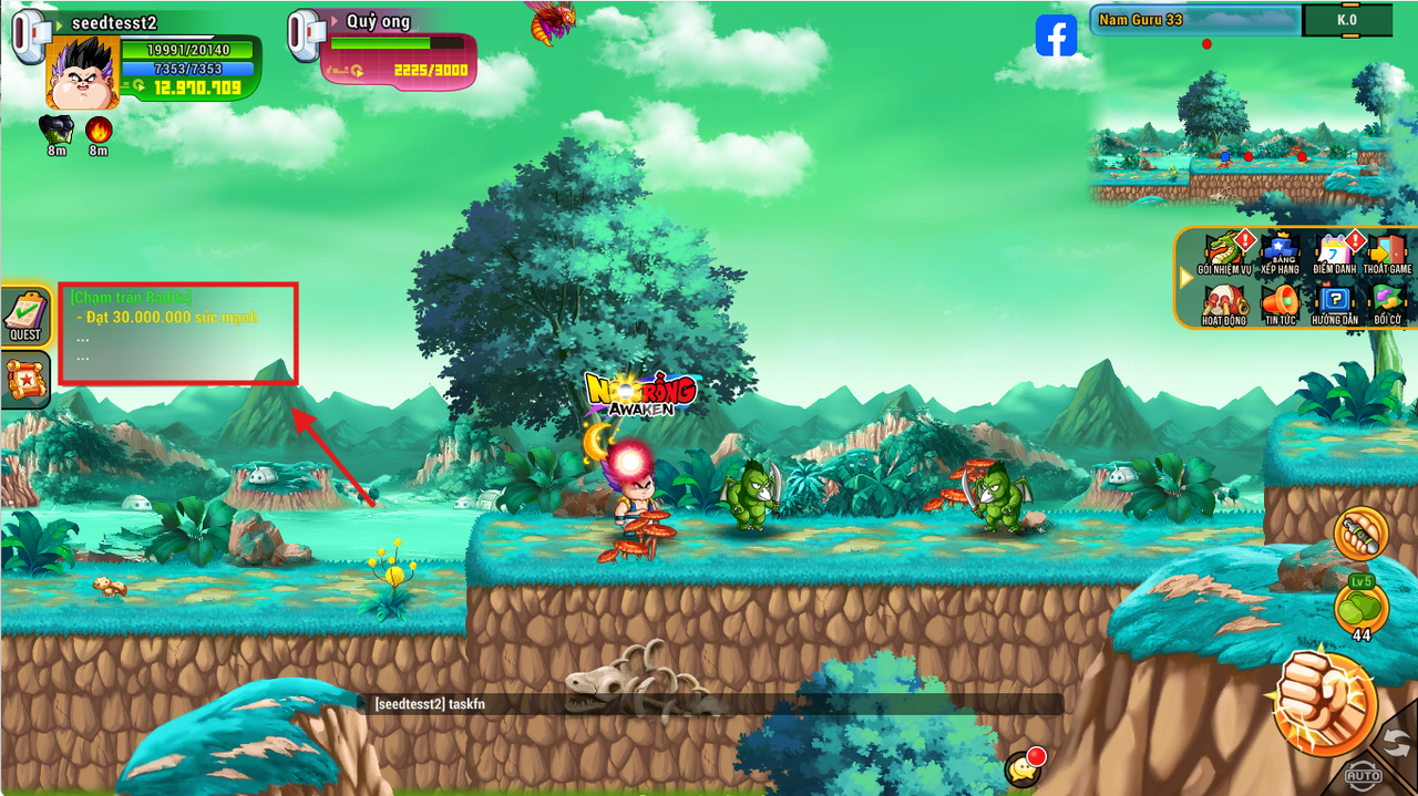 Chọn map quái phù hợp bằng cách ấn vào thanh nhiệm vụ để farm lên 30tr sức mạnh