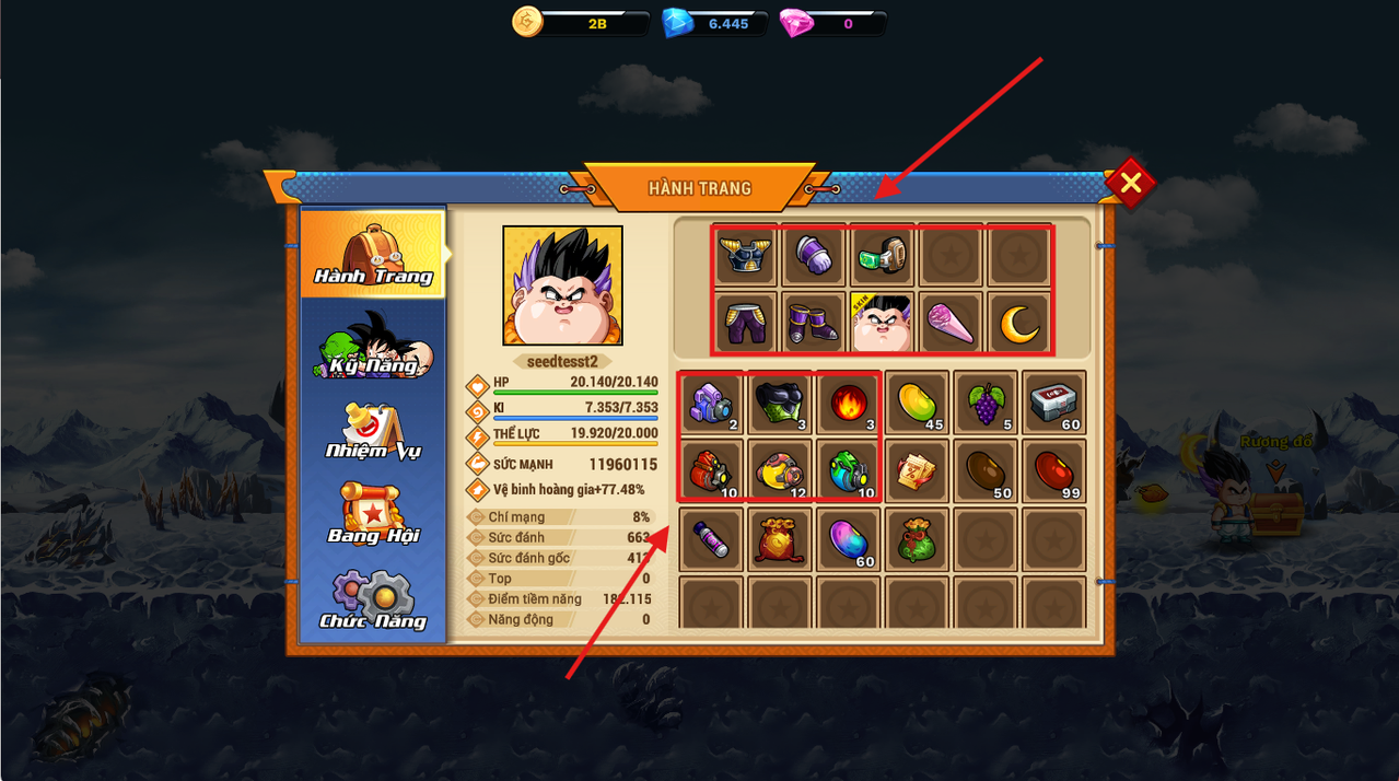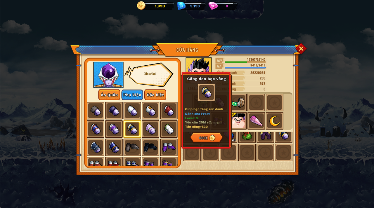 Nếu sức mạnh còn yếu hãy farm lên 50tr sức mạnh sử dụng thêm cuồng nộ, bổ huyết, giáp xên để tiêu diệt dễ hơn.