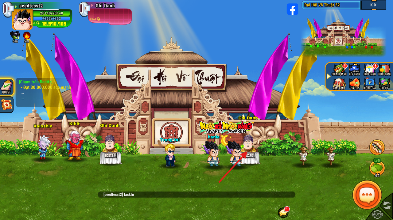 Tham gia Đại hội võ thuật để hoàn thành nhiệm vụ, Tiếp tục ra map quái 12k-20k để farm lên 30tr sức mạnh