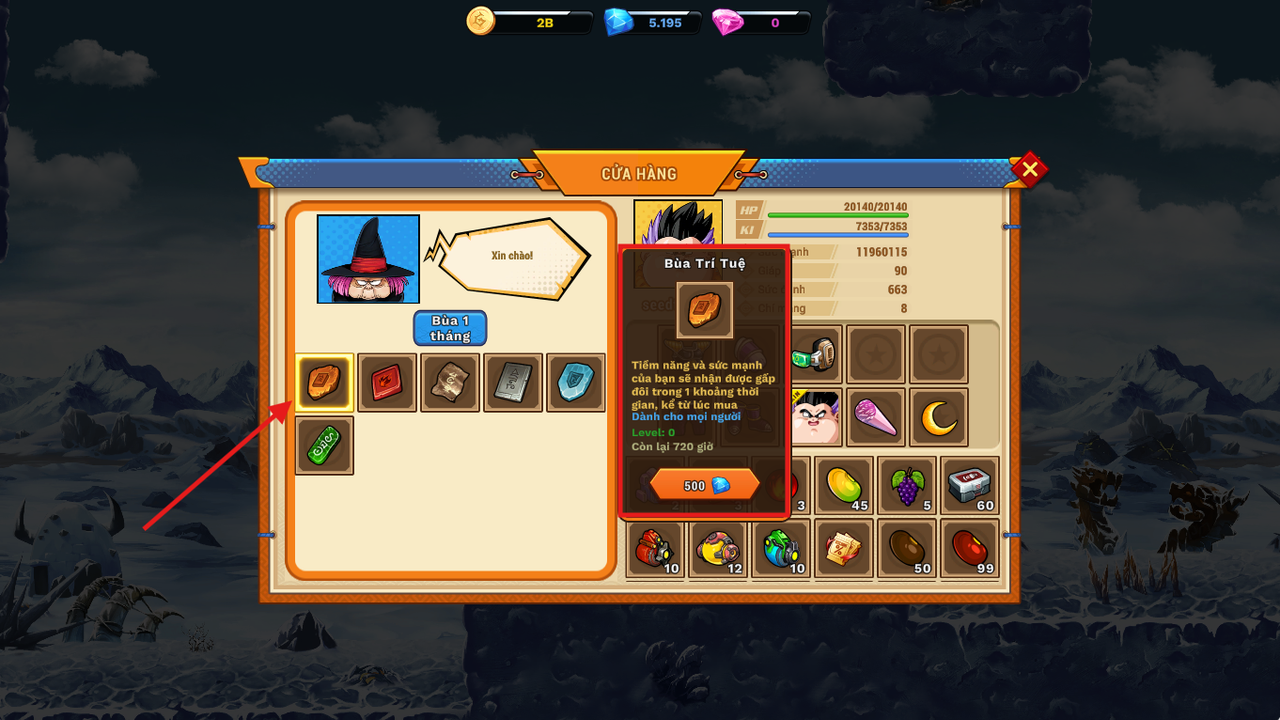 Ưu tiên thêm bùa trí tuệ, mạnh mẽ, da trâu để farm nhanh hơn