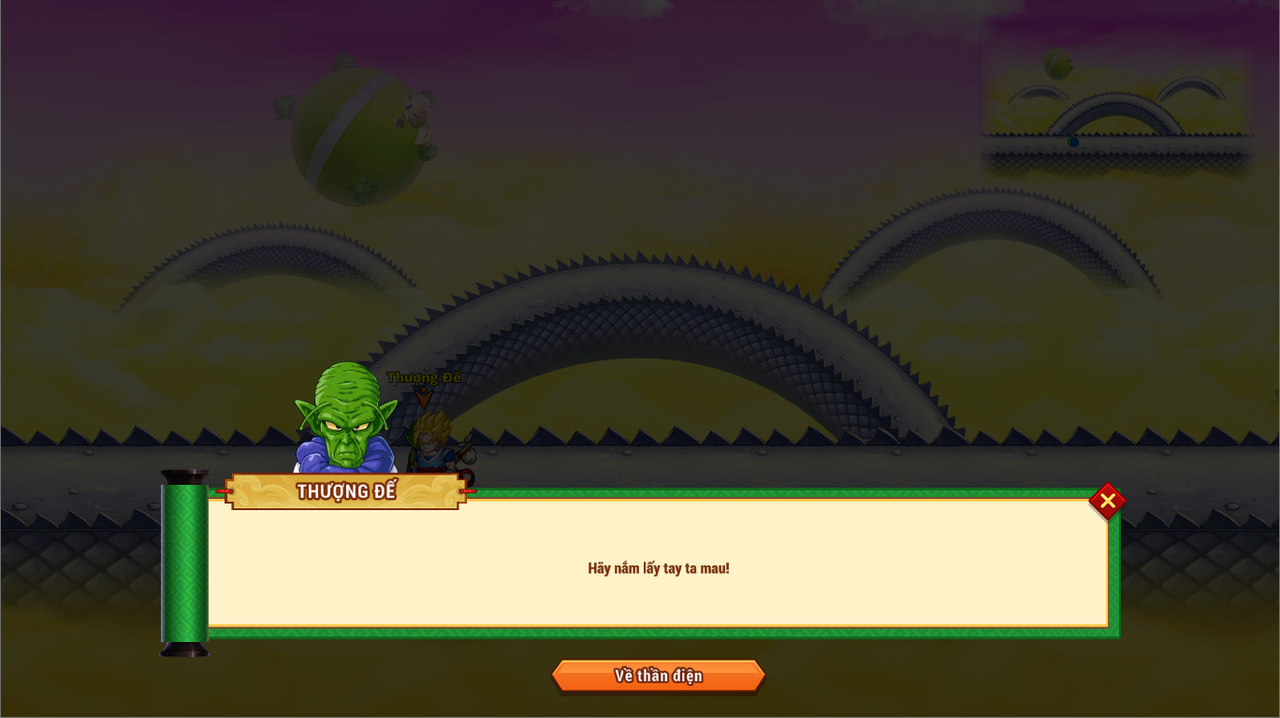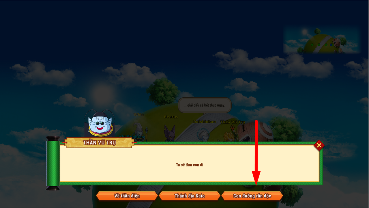 Bước 1: Gặp NPC Thần Vũ Trụ - Di chuyển - Con đường rắn độc - Chọn cấp độ. Cấp độ càng cao TNSM và Vàng càng nhiều, quái cũng sẽ mạnh hơn.