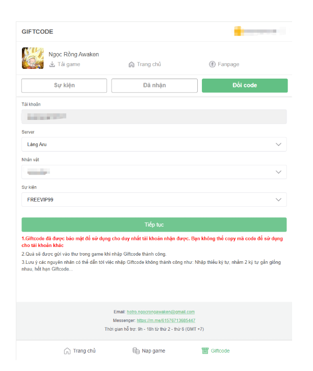 Hướng dẫn nhận và nhập code game Ngọc Rồng Awaken