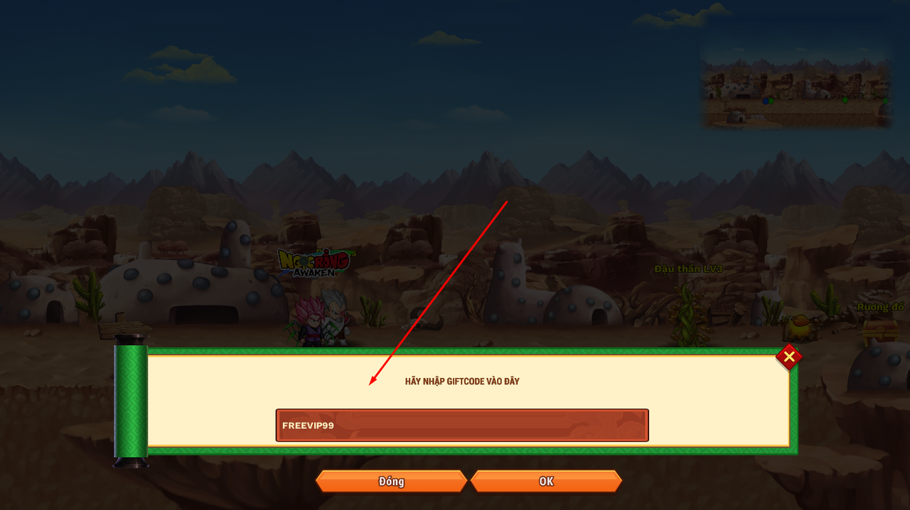 Bước 3: Nhập Giftcode vào Ô nhập Giftcode và ấn OK