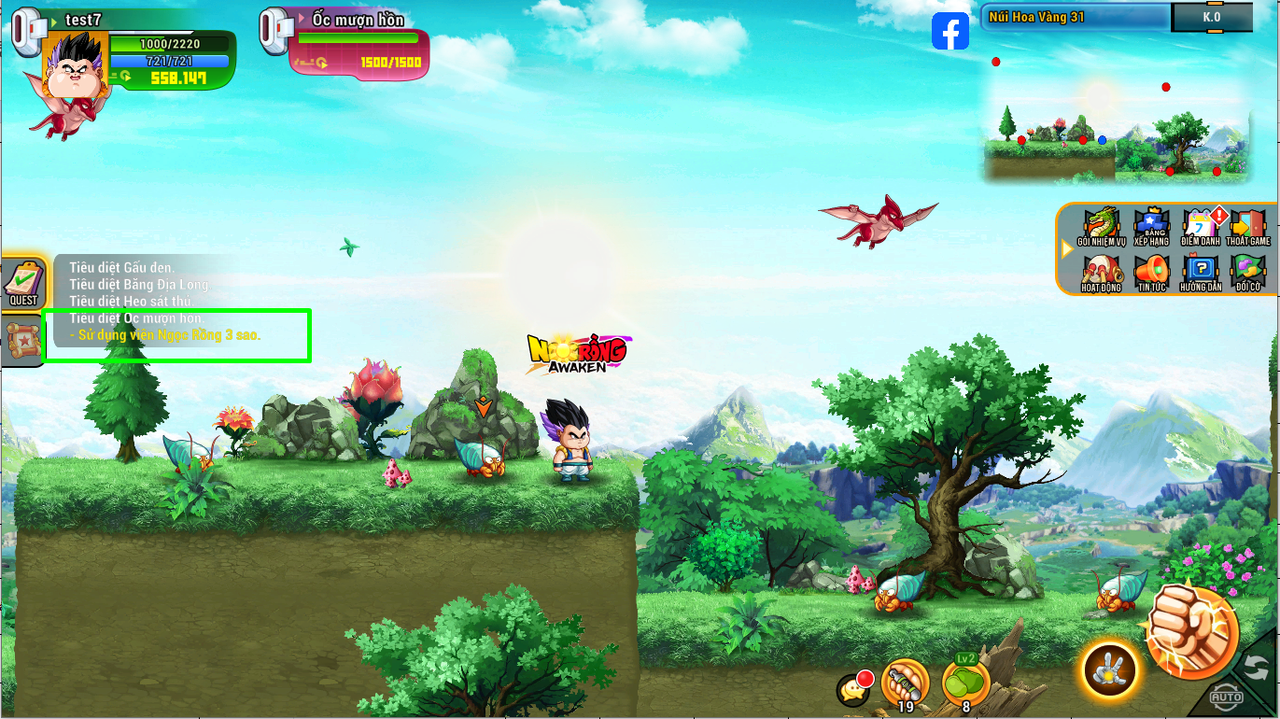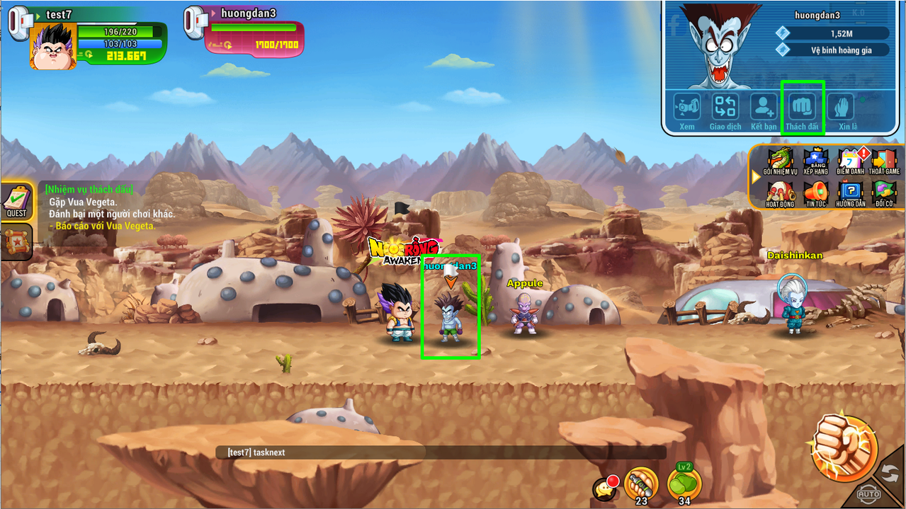 - Mẹo hoàn thành nhiệm vụ: Chiến binh có thể đi loanh quanh trong các bản đồ để tìm người thách đấu, hoặc nhờ các anh em trên group của Ngọc Rồng Awaken để nhờ giúp đỡ nhé