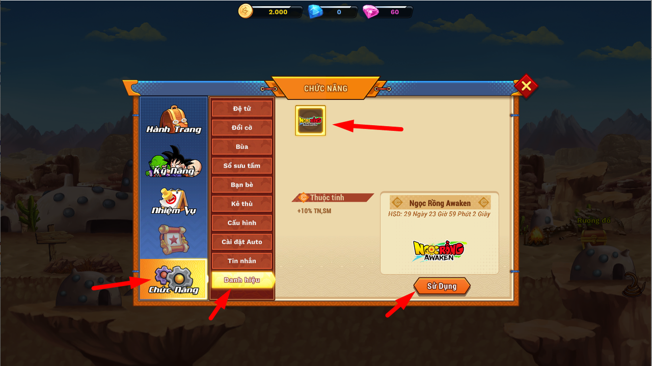 Sử dụng Danh hiệu Ngọc Rồng Awaken
