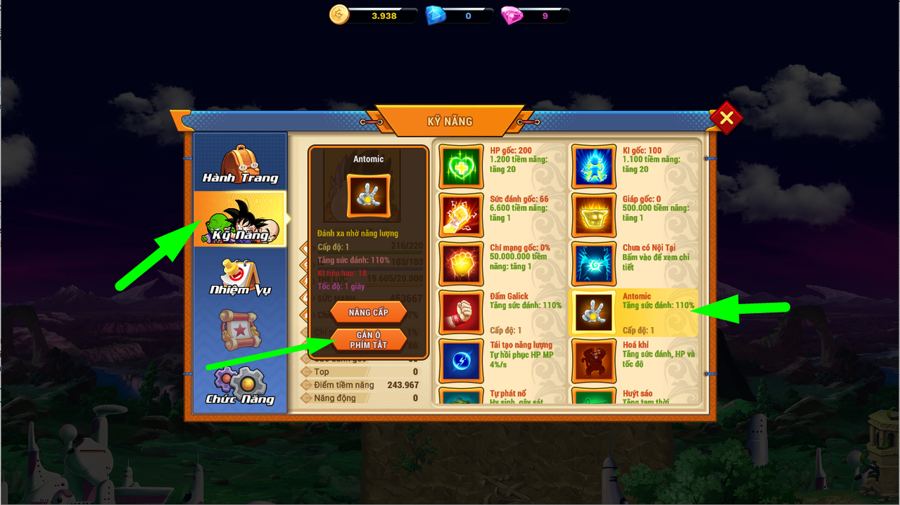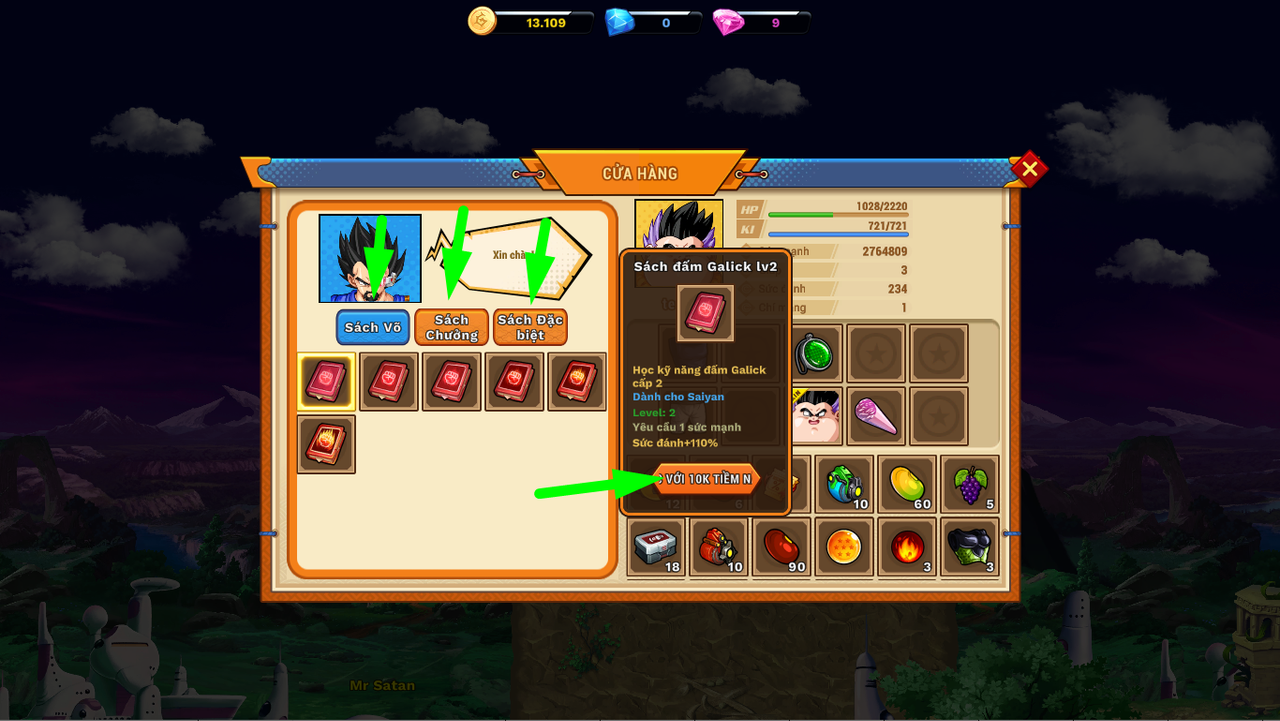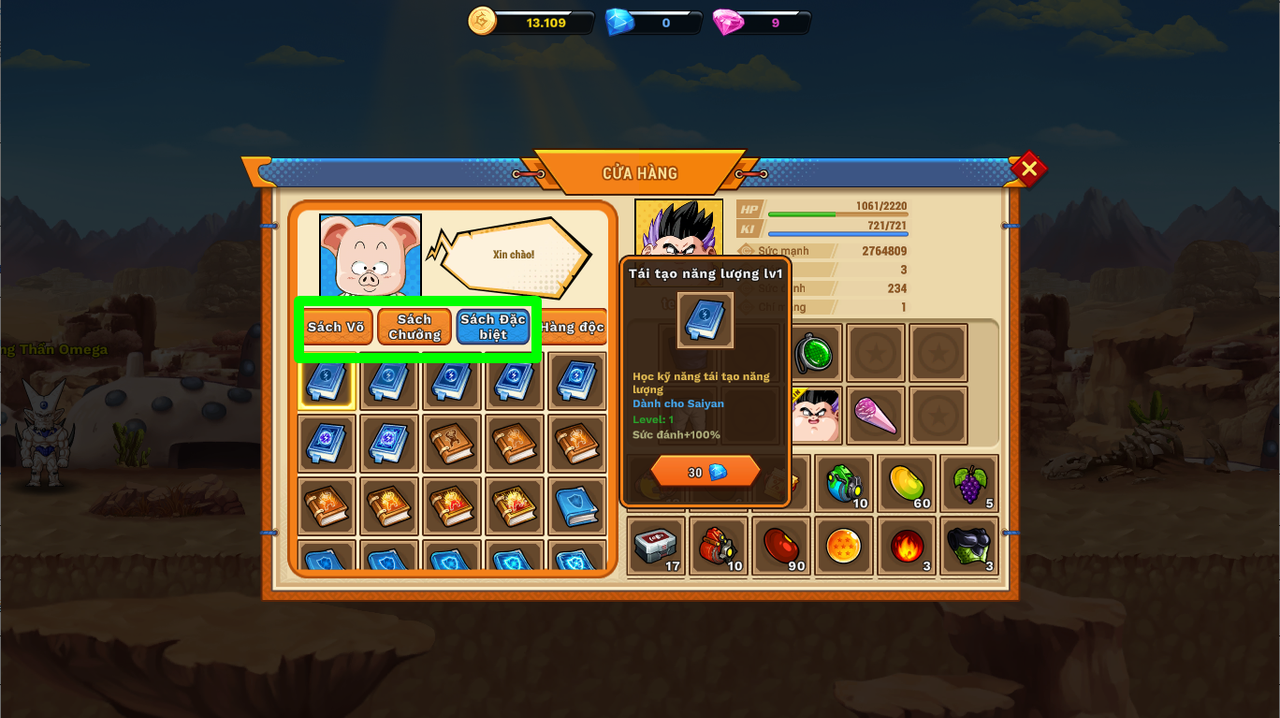 - Hoặc các Chiến binh có thể lựa chọn cách nhanh chóng hơn, mua sách kỹ năng tại Oolong ở Trạm tàu vũ trụ để học tức thì không tốn tiềm năng, không phải chờ đợi.