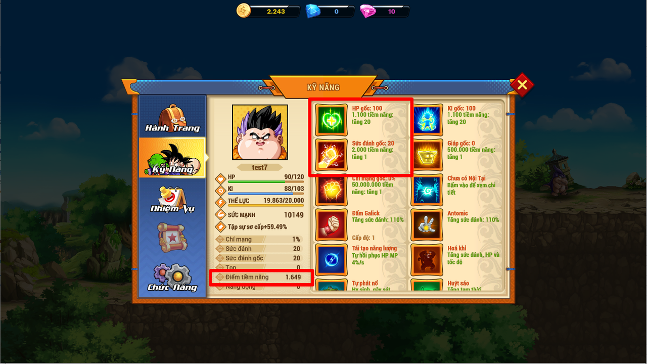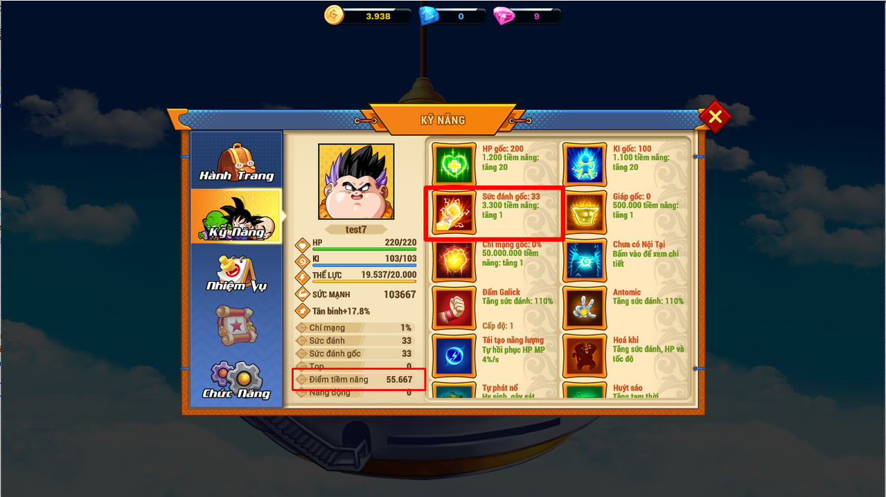 Ưu tiên cộng tiềm năng vào HP và Sức đánh giai đoạn đầu game