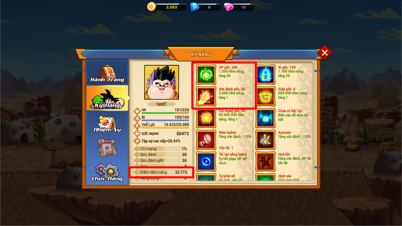 - Hoàn thành nhiệm vụ Khởi động và cộng điểm tiềm năng. Ưu tiên cộng HP gốc và Sức đánh gốc