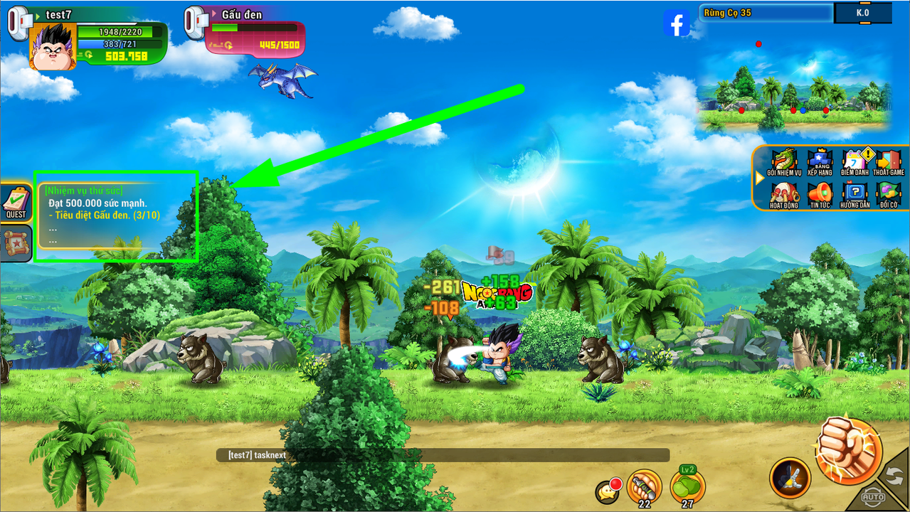 - Tiếp tục bấm auto hoàn thành nhiệm vụ và cày sức mạnh lên 10tr sức mạnh nhanh chóng
