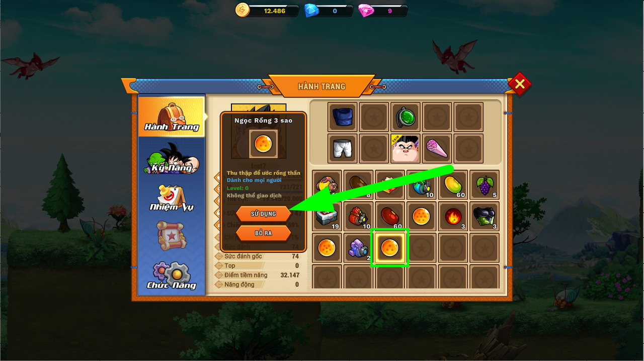 Nhiệm vụ sử dụng ngọc rồng 3 sao