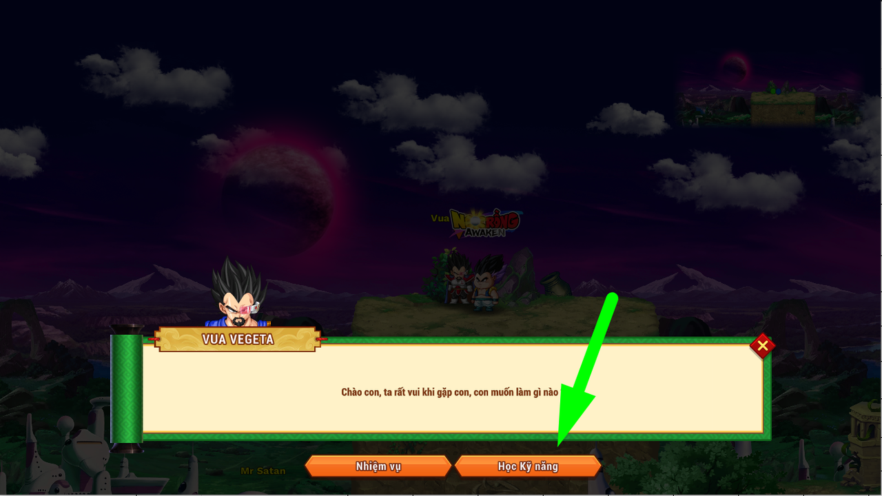 Học kỹ năng tại NPC Vua Vegeta, Quy lão, Trưởng lão Guru, Sorbet (tùy hành tinh)