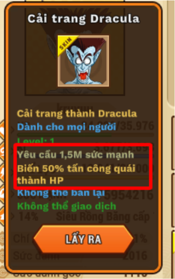 -Dùng cải trang Dracula nếu có để treo farm tối ưu hơn (cải trang dracula có thể mua ở santa và có thể nhận tại đây) LINK