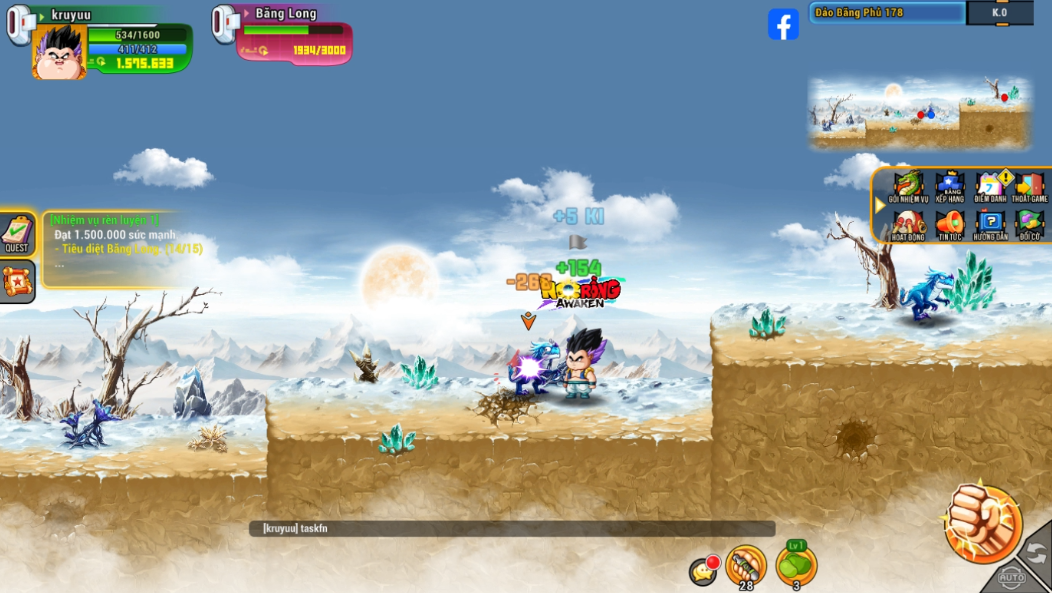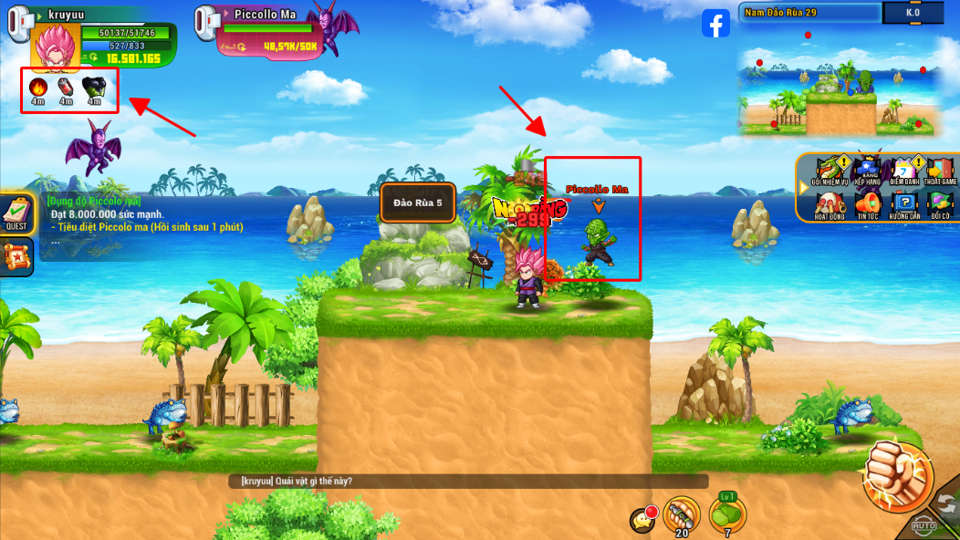 Lưu ý: Nhiệm vụ tiếp theo (sau nhiệm vụ: đạt 8.000.000 sức mạnh) là tiêu diệt Piccolo ma. Đây là boss nhiệm vụ nên nó khá khỏe trâu, nên mình cần farm sức mạnh để nâng chỉ số lên chút nữa cho dễ đánh bại hắn. Có thể farm ở các bãi 3k HP, 12k HP, 20k HP tùy vào chỉ số SD, HP các bạn