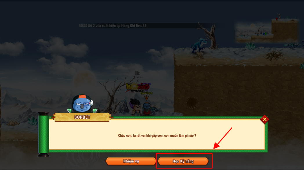 - Học kĩ năng tại NPC Sorbet nhưng nó sẽ tốn tiềm năng và thời gian đợi học theo từng chiêu và từng cấp độ